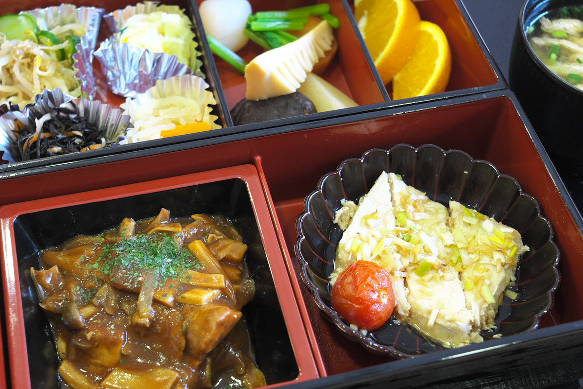 ロープウェイ降り場「ビューテラスてんじん」で山の景色をのんびり眺めつつ暖まってから降りてきた。