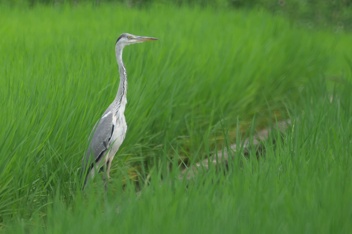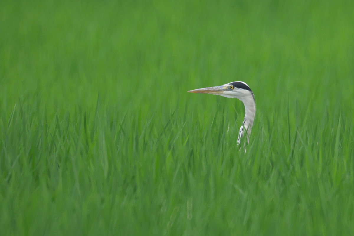 ひょっこり頭を出したアオサギ。