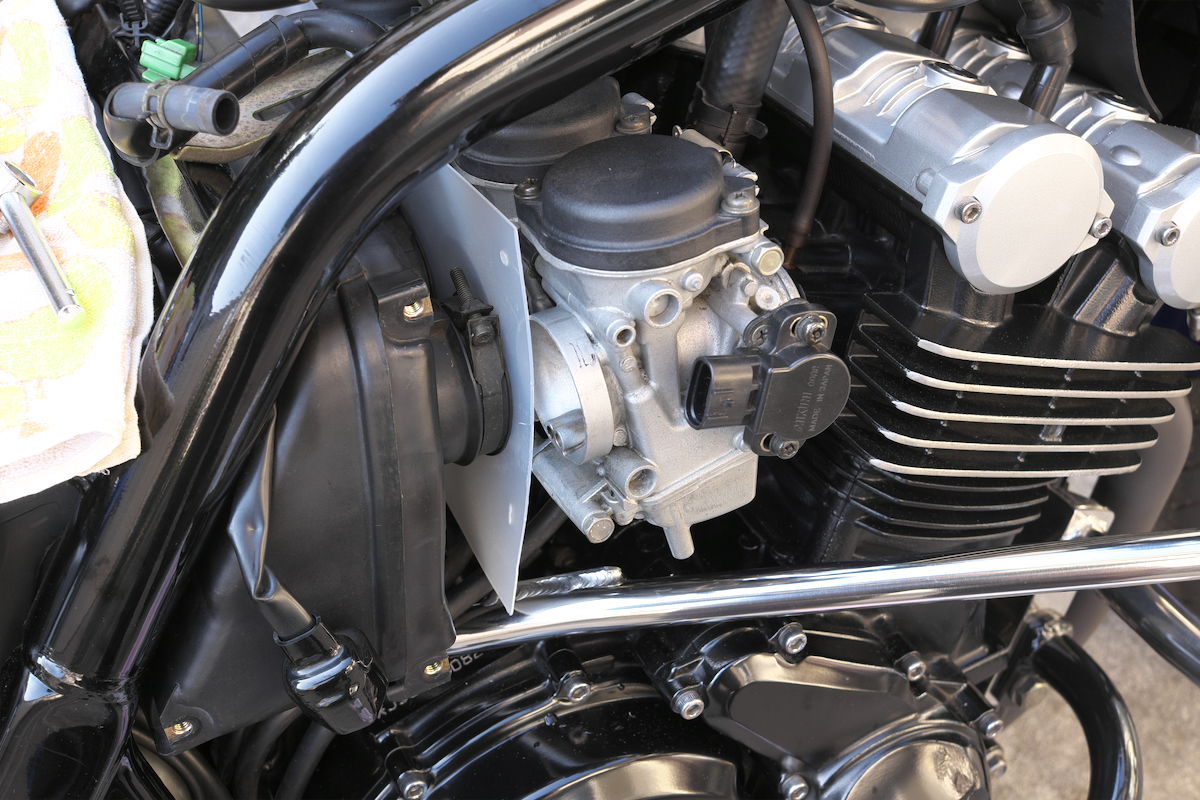 キャブの取り付けは、先日閃いた小技であっという間に適正な位置まで入れることができた。